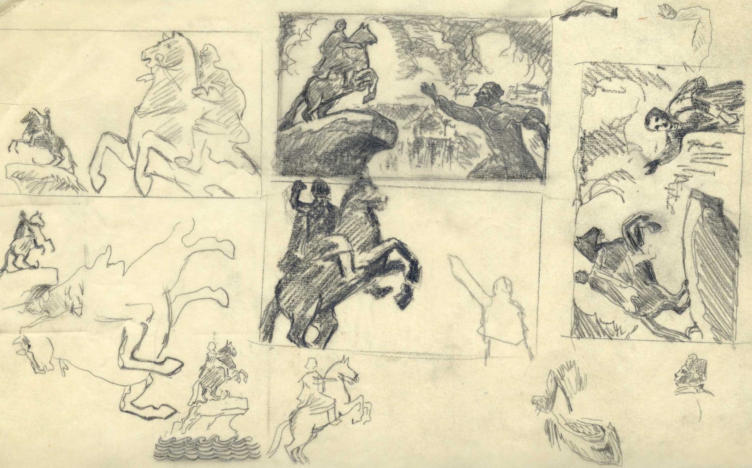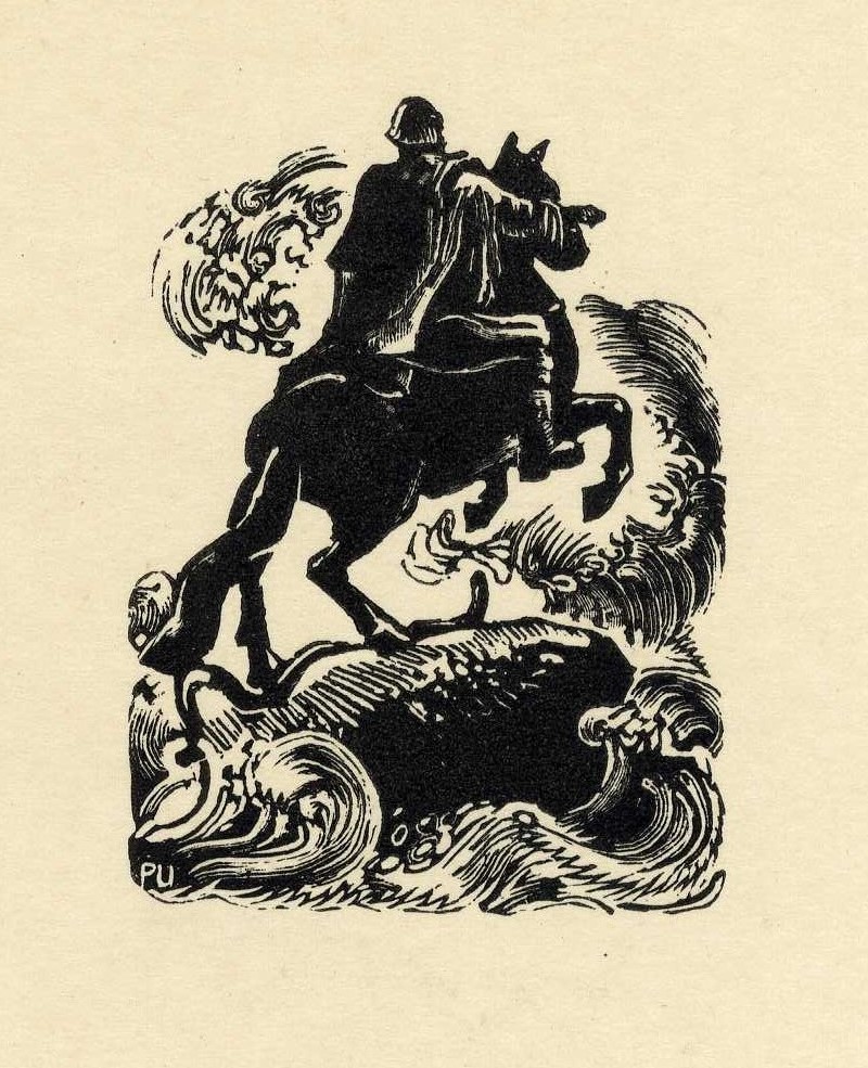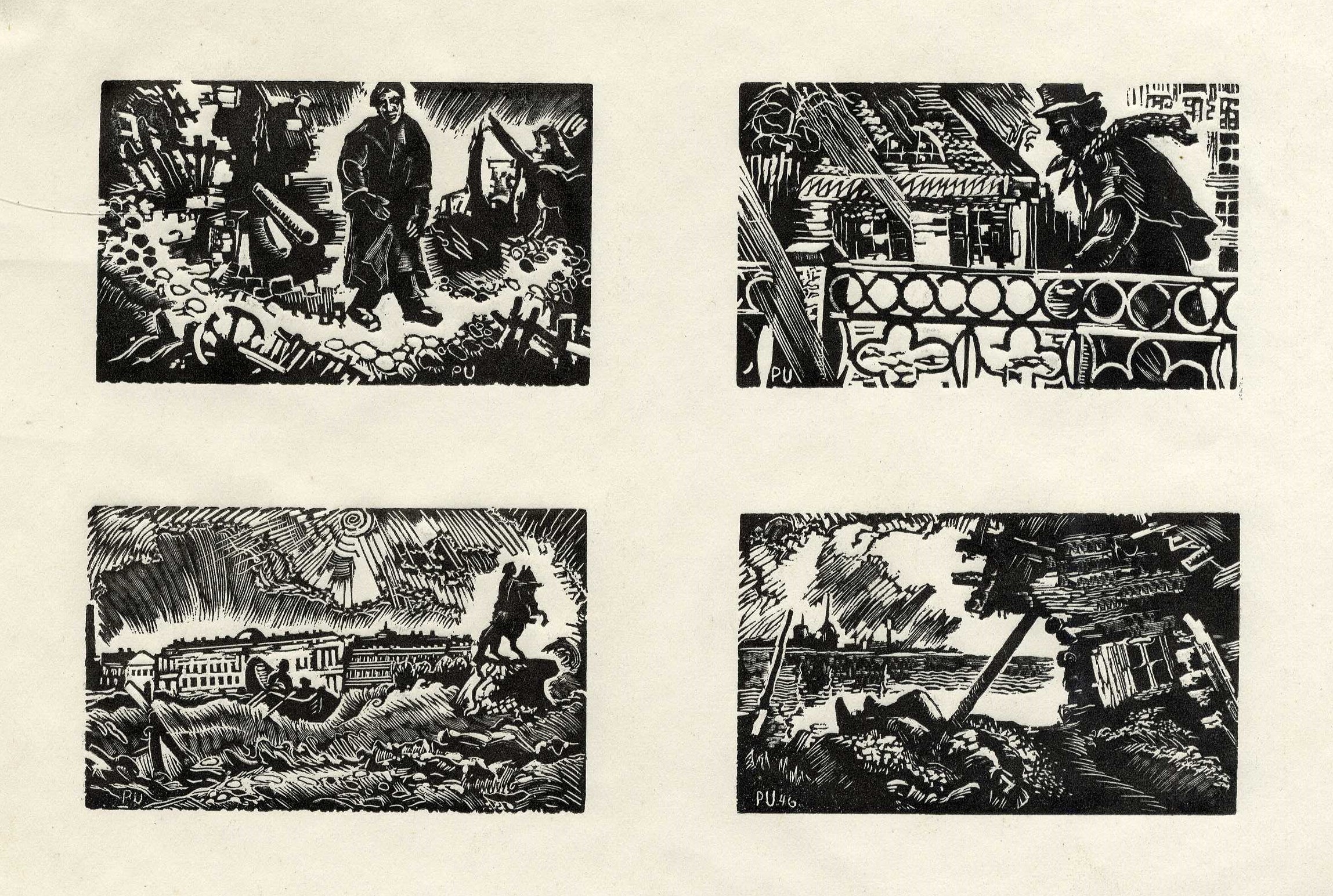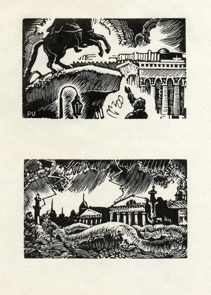 P. Upīša darinātās ilustrācijas Puškina poēmai “Vara jātnieks”, 1946. gads. Avots: LNA_LVA_F1839.