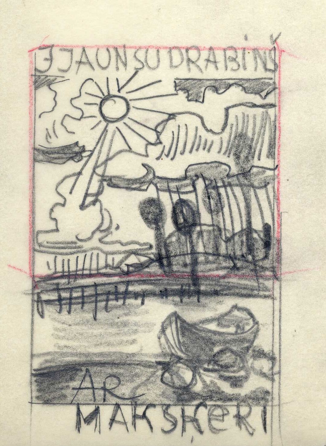 P. Upīša darinātās ilustrāciju skices J. Jaunsudrabiņa grāmatai “Ar makšķeri, Ūdenī”, 1966. gads. Avots: LNA_LVA_F1839.