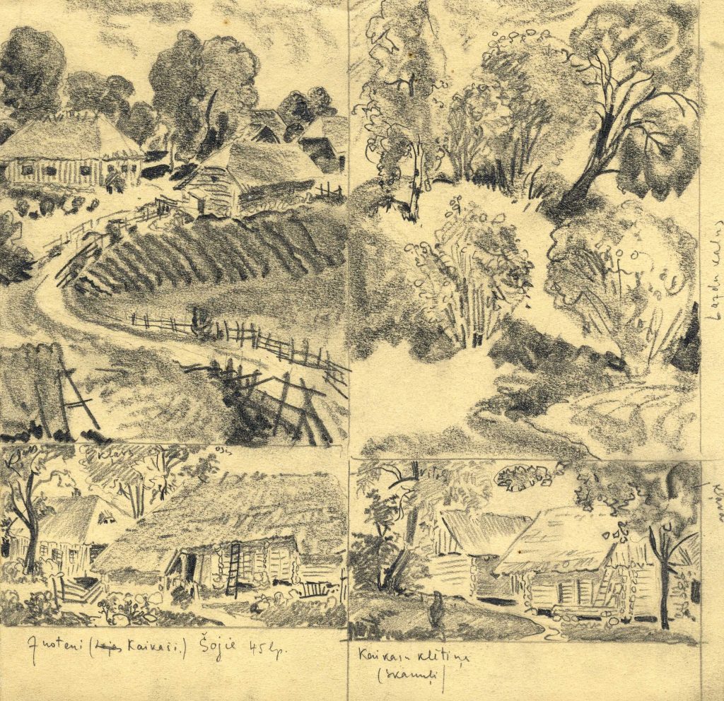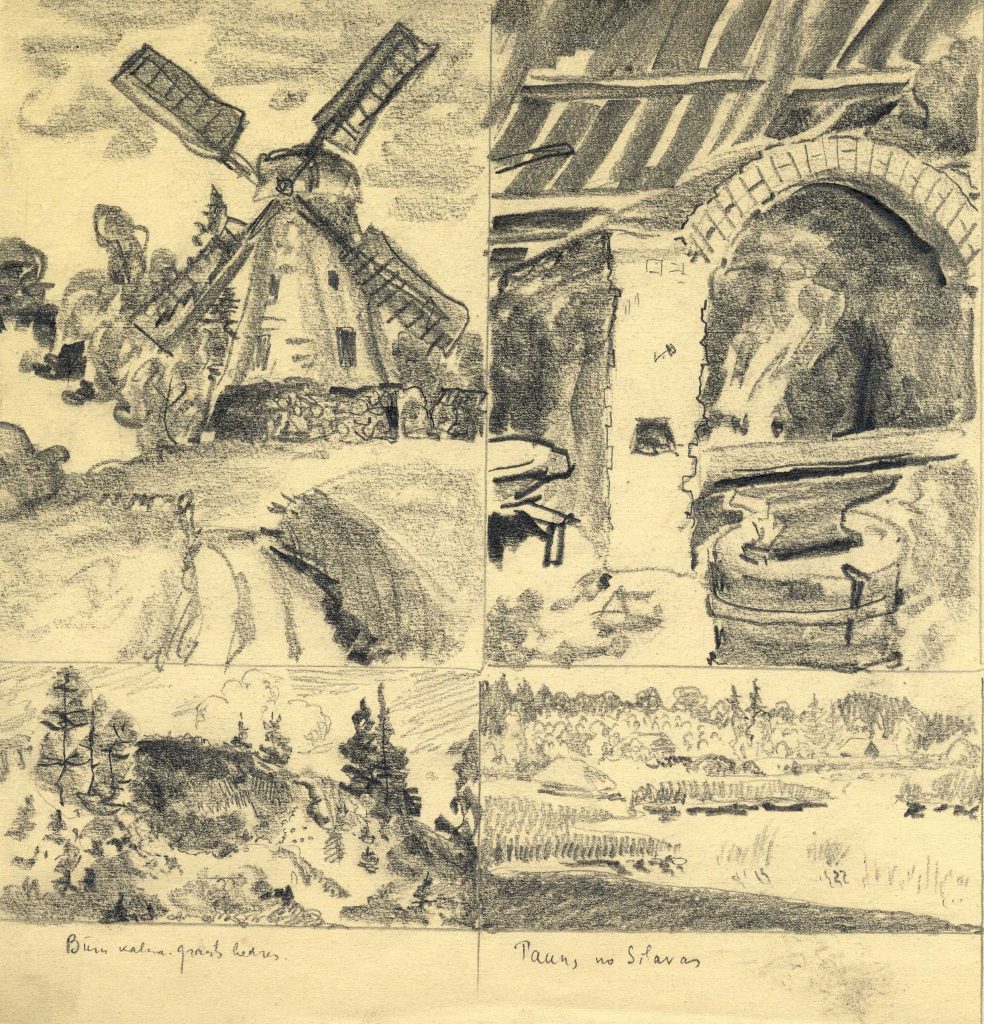 P. Upīša skiču klades zīmējumi, 1920.-1930. gadi. Avots: LNA_LVA_F1839.